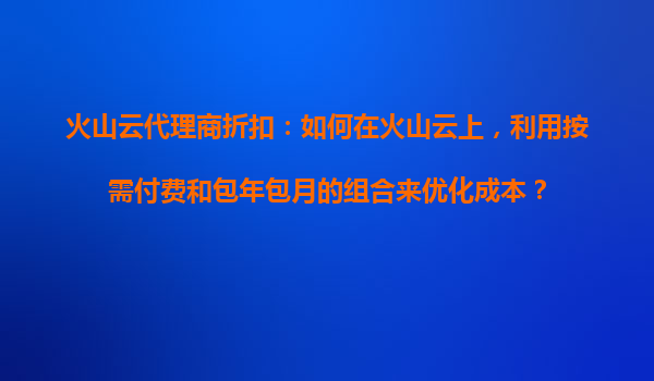 2025-10-30火山云代理商折扣:如何在火山云上,利用按需付費(fèi)和包年包月的組合來優(yōu)化成本? 引言 在當(dāng)前快速發(fā)展的云計(jì)算市場中,企業(yè)需要靈活且高效的資源管理方式?;鹕皆谱鳛閲鴥?nèi)領(lǐng)先的云服務(wù)提供商,通過...