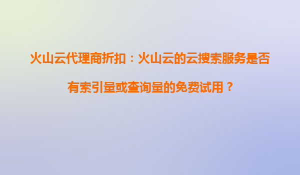 2025-10-30火山云代理商折扣:火山云的云搜索服務(wù)是否有索引量或查詢量的免費(fèi)試用? 火山云代理商折扣政策解析 火山云作為國內(nèi)領(lǐng)先的云計(jì)算服務(wù)商,提供全面的云搜索解決方案。針對代理商,火山云...