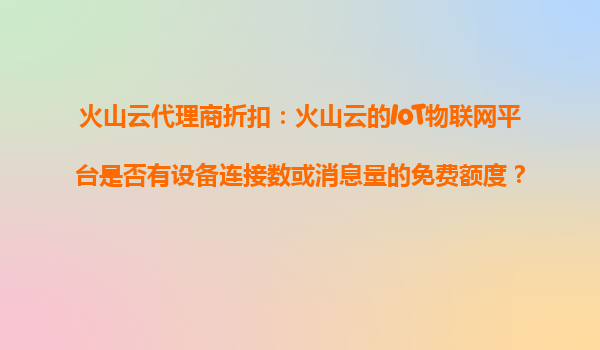 2025-10-30火山云代理商折扣:IoT物聯(lián)網(wǎng)平臺免費額度與產(chǎn)品優(yōu)勢解讀 一、火山云IoT物聯(lián)網(wǎng)平臺免費額度解析 針對代理商及企業(yè)用戶關注的免費資源問題,火山云IoT平臺確實提...