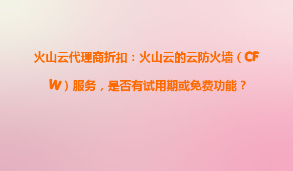 2025-10-30火山云代理商折扣:火山云云防火墻(CFW)服務試用與免費功能解析 一、火山云代理商折扣與產(chǎn)品優(yōu)勢概述 火山云作為國內領先的云計算服務提供商,通過代理商渠道為用戶提供靈活的折扣方案,尤其在...