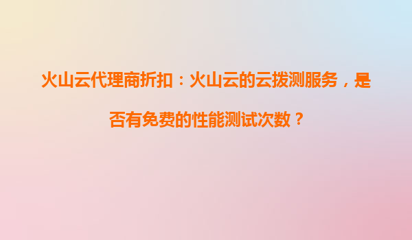 2025-10-29火山云代理商折扣:云撥測服務的免費性能測試次數(shù)與優(yōu)勢解析 一、火山云云撥測服務概覽 火山云作為字節(jié)跳動旗下的云計算品牌,近年來憑借其高性能、高可靠性及豐富的產(chǎn)品矩陣迅速崛起。其中,云撥...