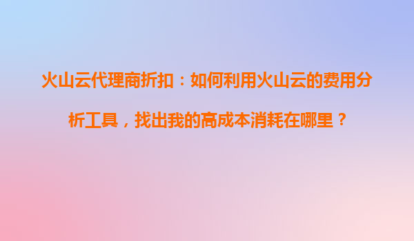 2025-10-30火山云代理商折扣:高效成本管控的關鍵工具 在云計算時代,資源使用的高效性與成本優(yōu)化成為企業(yè)運營的核心需求。作為火山云的代理商或用戶,如何快速定位高成本消耗并實現(xiàn)降本增效?火山云的費用分析工具提供了...