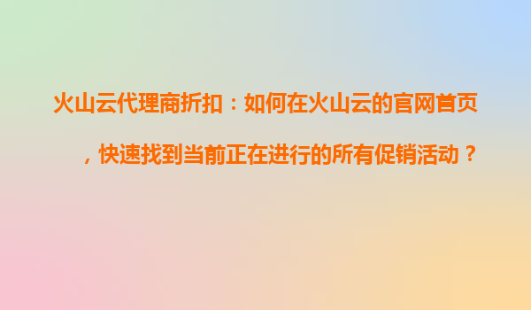 2025-10-30火山云代理商折扣:如何利用火山云的技術研討會或公開課,獲得隱藏的優(yōu)惠信息? 一、火山云的核心優(yōu)勢與代理商合作價值 火山云作為國內領先的云計算服務商,其技術實力和資源覆蓋能力為...