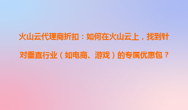 2025-10-29火山云代理商折扣:如何在火山云上找到針對垂直行業(yè)(如電商、游戲)的專屬優(yōu)惠包? 一、火山云的核心優(yōu)勢與行業(yè)適配性 火山云作為字節(jié)跳動旗下的云計算服務(wù)品牌,憑借其底層技術(shù)架構(gòu)和全球化資源...