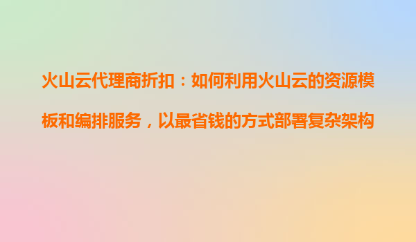 2025-10-29火山云代理商折扣:如何利用火山云的資源模板和編排服務(wù),以最省錢的方式部署復(fù)雜架構(gòu)? 1.火山云的核心優(yōu)勢與代理商折扣價值 火山云作為企業(yè)級云計算平臺,提供高性能計算、彈性擴展和全球...