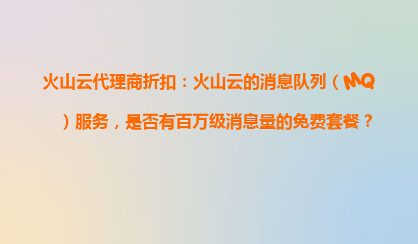 2025-10-29火山云消息隊列(MQ)服務(wù)免費套餐解析及代理商優(yōu)勢詳解 一、火山云MQ服務(wù)免費套餐詳情 截至目前,火山云消息隊列(MQ)服務(wù)確實為開發(fā)者提供了免費套餐選項,但需要特別注意: 免費額度...