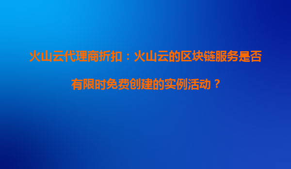 2025-10-29火山云代理商折扣:限時免費區(qū)塊鏈服務(wù)實例活動解析 一、火山云區(qū)塊鏈服務(wù)的核心優(yōu)勢 火山云作為字節(jié)跳動旗下的云計算品牌,其區(qū)塊鏈服務(wù)憑借以下差異化優(yōu)勢在行業(yè)中脫穎而出: 高性...