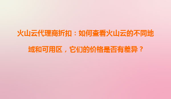 2025-10-29火山云代理商折扣:如何查看火山云的不同地域和可用區(qū)及價格差異 火山云的地域與可用區(qū)概述 火山云作為字節(jié)跳動旗下的云計算服務(wù)品牌,提供了全球范圍內(nèi)的多地...