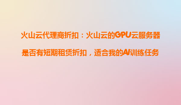 2025-10-29火山云GPU云服務(wù)器短期租賃折扣與AI訓(xùn)練任務(wù)的解決方案 一、火山云GPU云服務(wù)器的核心優(yōu)勢 隨著AI技術(shù)的快速發(fā)展,企業(yè)對高性能計算資源的需求日益增長。火山云作為行業(yè)領(lǐng)先的云服務(wù)提供商,其GPU...