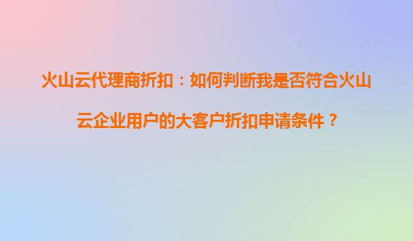 2025-10-28火山云代理商折扣:如何判斷我是否符合火山云企業(yè)用戶的大客戶折扣申請(qǐng)條件? 一、火山云的核心優(yōu)勢(shì) 火山云作為字節(jié)跳動(dòng)旗下的云計(jì)算服務(wù)品牌,憑借其強(qiáng)大的技術(shù)背書和全球化基礎(chǔ)設(shè)施布局,為企業(yè)用戶提供...