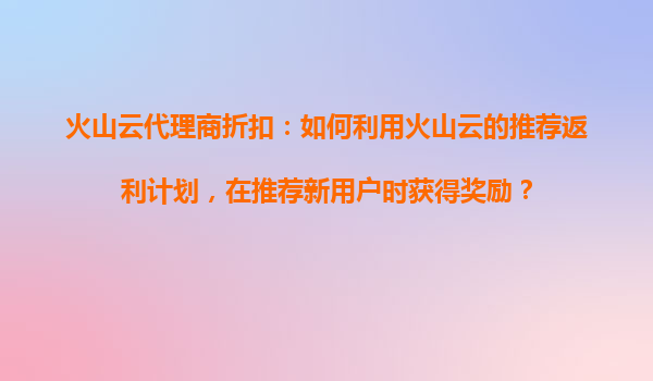 2025-10-28火山云代理商折扣:如何利用火山云的推薦返利計(jì)劃,在推薦新用戶時(shí)獲得獎(jiǎng)勵(lì)? 1.火山云的優(yōu)勢(shì)解析 火山云作為國(guó)內(nèi)領(lǐng)先的云計(jì)算服務(wù)提供商,以其高性能、高可靠...
