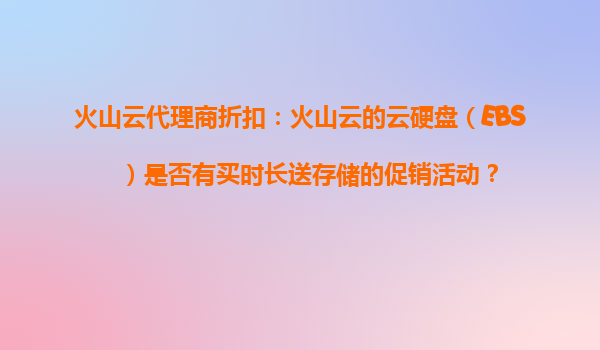 4008-020-360 火山云代理商折扣:火山云EBS買時(shí)長(zhǎng)送存儲(chǔ)促銷活動(dòng)解析 一、火山云EBS核心優(yōu)勢(shì)與促銷活動(dòng) 火山云作為字節(jié)跳動(dòng)旗下云計(jì)算品牌,其云硬盤(EBS)以高性能、低延遲和穩(wěn)定可靠著稱。針對(duì)企業(yè)存儲(chǔ)成本優(yōu)化需...