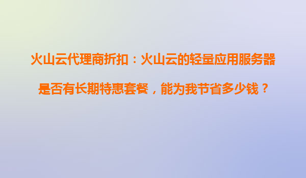2025-10-27火山云代理商折扣:揭秘輕量應(yīng)用服務(wù)器長(zhǎng)期特惠套餐的省錢攻略 一、火山云輕量應(yīng)用服務(wù)器的核心優(yōu)勢(shì) 火山云作為字節(jié)跳動(dòng)旗下的云計(jì)算品牌,其輕量應(yīng)用服務(wù)器(L...