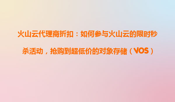 2025-10-27如何參與火山云限時(shí)秒殺活動(dòng)?火山云代理商帶你搶購超低價(jià)VOS對(duì)象存儲(chǔ) 一、火山云限時(shí)秒殺活動(dòng)簡(jiǎn)介 火山云作為字節(jié)跳動(dòng)旗下的云計(jì)算品牌,定期推出限時(shí)秒殺活動(dòng),為用戶提供超低價(jià)的產(chǎn)品體驗(yàn)機(jī)會(huì)。其中對(duì)象...
