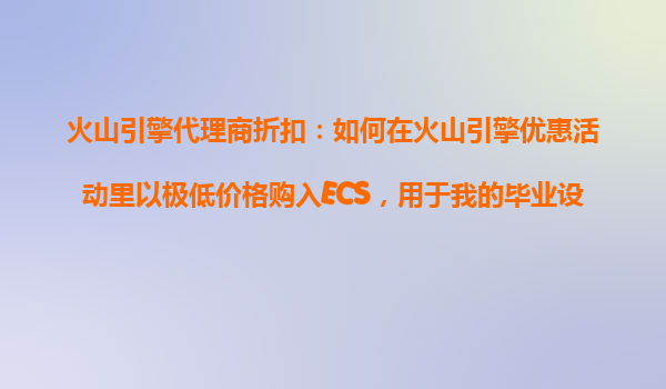2025-10-26火山引擎代理商折扣指南:如何以極低價購入ECS助力畢業(yè)設計 一、火山引擎ECS的核心優(yōu)勢 在畢業(yè)設計等輕量級場景中,火山引擎的彈性計算服務(ECS)憑借以下優(yōu)勢成為性價...