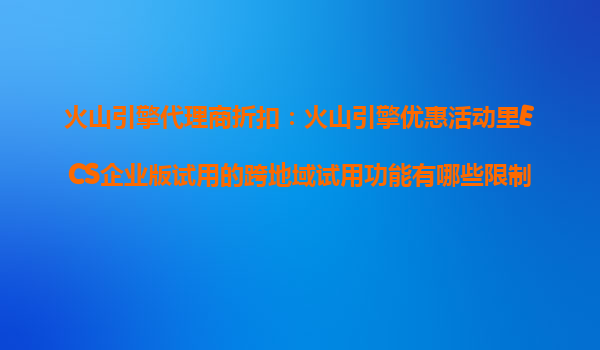 2025-10-26火山引擎代理商折扣:火山引擎優(yōu)惠活動中ECS企業(yè)版試用的跨地域試用功能限制解析 一、火山引擎ECS企業(yè)版跨地域試用功能概述 火山引擎作為字節(jié)跳動旗下的云計算服務平臺,其ECS企業(yè)版(彈性計算服務)提供了跨地...