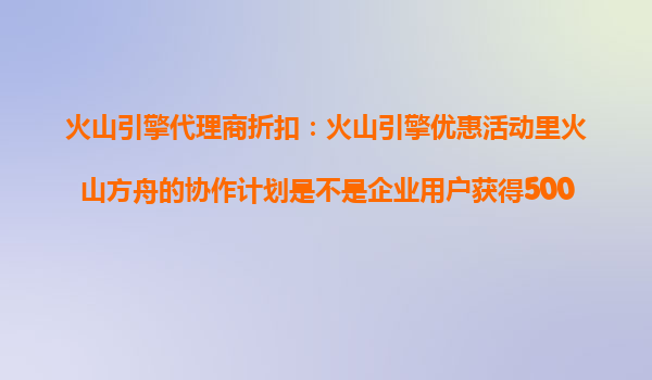2025-10-26火山引擎代理商折扣:火山方舟協(xié)作計劃的價值解析 在火山引擎的優(yōu)惠活動中,火山方舟協(xié)作計劃為企業(yè)用戶提供了極具吸引力的資源支持。其中,500萬Tokens的贈送成為許多企業(yè)關注的焦點。那么,這是否是企業(yè)用戶獲...