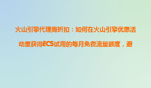 4008-020-360 火山引擎代理商折扣:如何在火山引擎優(yōu)惠活動里獲得ECS試用的每月免費流量額度,避免額外流量費用? 一、火山引擎的優(yōu)勢與ECS服務簡介 火山引擎作為字節(jié)跳動旗下的云計算品牌,依托全球數(shù)據(jù)中心和...