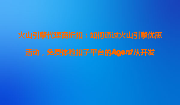 2025-10-27火山引擎代理商折扣:如何通過火山引擎優(yōu)惠活動,免費體驗扣子平臺的Agent從開發(fā)到部署的全流程 一、火山引擎優(yōu)惠活動簡介 火山引擎作為字節(jié)跳動旗下的云服務平...