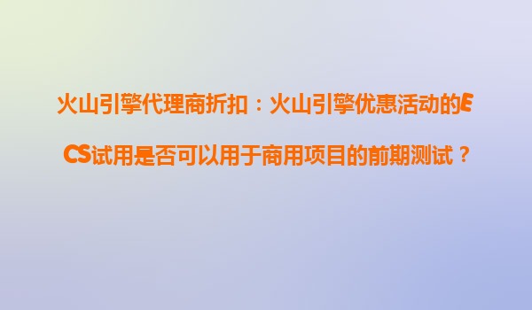 2025-10-26火山引擎代理商折扣:火山引擎ECS試用能否用于商用項目前期測試? 一、火山引擎ECS試用活動的核心價值 火山引擎近期推出的ECS(彈性計算服務)試用活動,為企業(yè)...