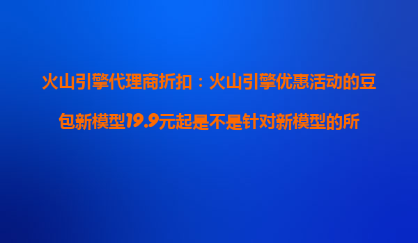2025-10-25火山引擎代理商折扣活動(dòng)解析 近日,火山引擎推出的豆包新模型優(yōu)惠活動(dòng)引發(fā)廣泛關(guān)注,其中“19.9元起”的折扣價(jià)格尤其引人矚目。不過許多用戶好奇這一優(yōu)惠是否對所有新模型用戶有效。實(shí)際上,此類促銷活動(dòng)通常針對特...