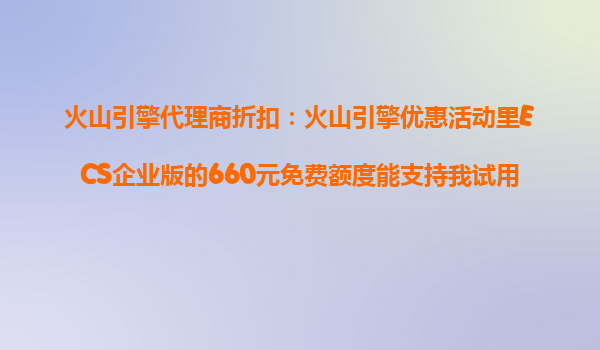 2025-10-25火山引擎代理商折扣:ECS企業(yè)版660元免費(fèi)額度試用指南 一、火山引擎ECS企業(yè)版免費(fèi)額度解析 火山引擎推出的660元免費(fèi)額度是企業(yè)用戶試用ECS云服務(wù)器的專項(xiàng)福利,適用于新注冊企業(yè)賬號。 ...