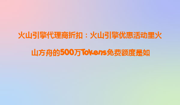 4008-020-360 火山引擎代理商折扣:火山引擎優(yōu)惠活動(dòng)中火山方舟500萬Tokens免費(fèi)額度分配詳解 一、火山引擎優(yōu)惠活動(dòng)概覽 火山引擎作為字節(jié)跳動(dòng)旗下的云計(jì)算服務(wù)平臺(tái),近期推出了包含火山方舟在內(nèi)的多項(xiàng)優(yōu)惠活動(dòng)。其中,最...