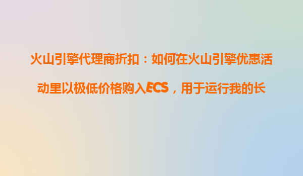 2025-10-25火山引擎代理商折扣:如何以極低成本購入ECS運(yùn)行長期應(yīng)用? 一、為什么選擇火山引擎ECS? 火山引擎作為字節(jié)跳動(dòng)旗下的云計(jì)算服務(wù)品牌,其彈性計(jì)算服務(wù)(ECS)以高性能、高穩(wěn)定性著稱,特別適合長期運(yùn)...
