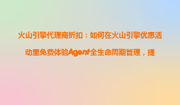2025-10-25火山引擎代理商折扣:如何在優(yōu)惠活動(dòng)中免費(fèi)體驗(yàn)Agent全生命周期管理,提升開發(fā)效率? 一、火山引擎與代理商的雙重優(yōu)勢解析 火山引擎作為字節(jié)跳動(dòng)旗下的云服務(wù)品牌,提供從基礎(chǔ)計(jì)算到AI能力的全棧技術(shù)支撐。...