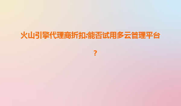 2025-07-11火山引擎代理商折扣:多云管理平臺免費試用開啟企業(yè)上云新體驗 火山引擎多云管理平臺的靈活試用政策 作為數(shù)字化轉(zhuǎn)型升級的重要工具,火山引擎多云管理平臺面向企業(yè)用戶提供了靈活的試用政策。通過官方...