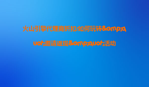 2025-07-11火山引擎代理商折扣:如何玩轉(zhuǎn)“邀請返現(xiàn)”活動? 隨著云計(jì)算服務(wù)的普及,越來越多的企業(yè)選擇通過云服務(wù)代理商來降低成本,提高效率。火山引擎作為字節(jié)跳動旗下的云計(jì)算服務(wù)品牌,憑借其強(qiáng)大的技術(shù)背...