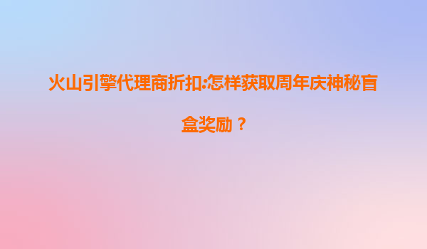 2025-07-10火山云代理商周年慶:解鎖神秘盲盒獎(jiǎng)勵(lì)的完美攻略 在火山云代理商周年慶的熱烈氛圍中,眾多合作伙伴翹首以盼的"神秘盲盒獎(jiǎng)勵(lì)"活動(dòng)正式上線!作為火山引擎生態(tài)體系的重要一環(huán),此次活動(dòng)不僅為代理商帶來豐厚福利,更...