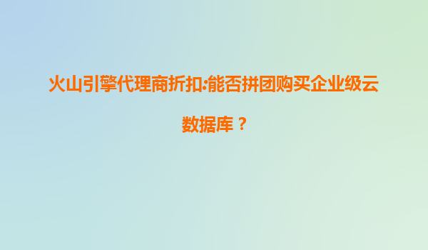 2025-07-10火山引擎代理商折扣助力企業(yè)云數(shù)據(jù)庫拼團(tuán)采購 隨著數(shù)字化轉(zhuǎn)型加速,企業(yè)級(jí)云數(shù)據(jù)庫需求激增?;鹕揭孀鳛樽止?jié)跳動(dòng)旗下的云服務(wù)平臺(tái),憑借其高性價(jià)比的代理商折扣政策和拼團(tuán)購買模式,正成為越來越多企業(yè)上云的...