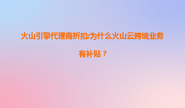 2025-07-09火山引擎代理商折扣:為什么火山云跨境業(yè)務(wù)有補(bǔ)貼? 一、火山引擎代理商折扣的推出背景 火山引擎是字節(jié)跳動(dòng)旗下的云計(jì)算品牌,近年來憑借強(qiáng)大的技術(shù)實(shí)力和資源整合能力迅速崛起。為了進(jìn)一步擴(kuò)大市場(chǎng)...