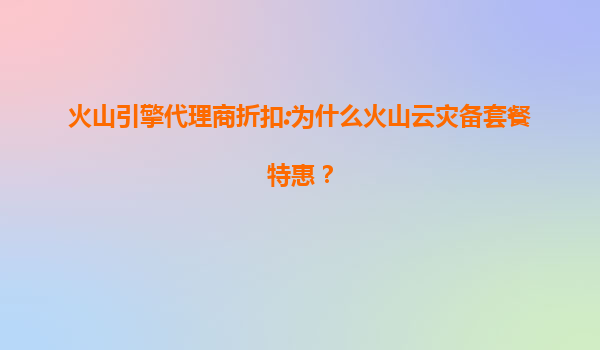 2025-07-09火山引擎代理商折扣:為什么火山云災(zāi)備套餐特惠? 近年來,數(shù)字化轉(zhuǎn)型加速推進(jìn),企業(yè)對(duì)數(shù)據(jù)安全和業(yè)務(wù)連續(xù)性的需求越來越高。云計(jì)算服務(wù)商紛紛推出各類災(zāi)備解決方案,其中火山云的災(zāi)備套餐以“特惠”著稱。那么,為...