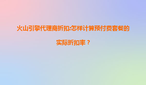 2025-07-08火山引擎代理商折扣:預(yù)付費(fèi)套餐的實(shí)際折扣率計(jì)算與火山云優(yōu)勢(shì)解析 一、預(yù)付費(fèi)套餐折扣率的計(jì)算方法 計(jì)算火山引擎代理商提供的預(yù)付費(fèi)套餐實(shí)際折扣率,需結(jié)合以下關(guān)鍵因素: 基礎(chǔ)定價(jià)模型:火...