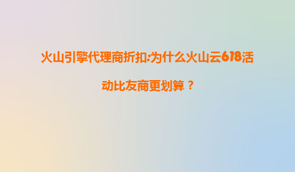 2025-07-07火山引擎代理商折扣:為什么火山云618活動(dòng)比友商更劃算? 一、火山云的核心優(yōu)勢(shì) 在云計(jì)算市場(chǎng)競(jìng)爭激烈的今天,火山引擎旗下的火山云憑借獨(dú)特的技術(shù)架構(gòu)和資源布局,為用...