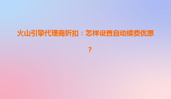 2025-07-07火山引擎代理商折扣:怎樣設(shè)置自動(dòng)續(xù)費(fèi)優(yōu)惠? 一、火山引擎代理商折扣概述 火山引擎作為字節(jié)跳動(dòng)旗下的云計(jì)算服務(wù)平臺(tái),憑借強(qiáng)大的技術(shù)支持和豐富的產(chǎn)品矩陣,為企業(yè)客戶提供高性能、高可靠的云服務(wù)解...