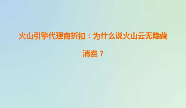 2025-07-06火山引擎代理商折扣:為什么說(shuō)火山云無(wú)隱藏消費(fèi)? 引言:透明消費(fèi)的云計(jì)算時(shí)代 在數(shù)字化轉(zhuǎn)型的浪潮中,企業(yè)對(duì)云服務(wù)的需求日益增長(zhǎng),但復(fù)雜的計(jì)費(fèi)模式和隱藏費(fèi)...