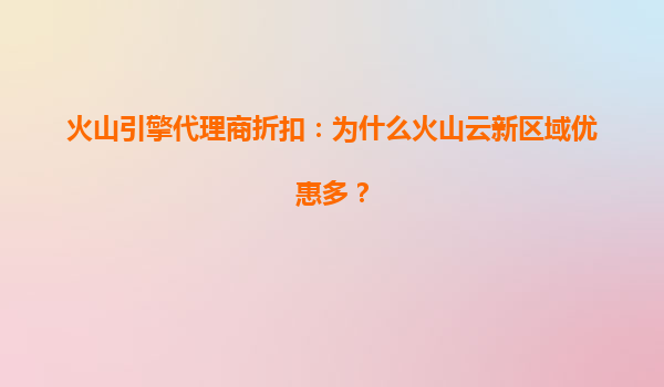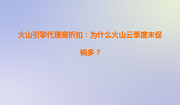 2025-07-06火山引擎代理商折扣:為什么火山云季度末促銷多? 引言 近年來(lái),云計(jì)算市場(chǎng)競(jìng)爭(zhēng)日益激烈,各大云服務(wù)提供商紛紛推出各種促銷活動(dòng)以吸引客戶?;鹕揭孀鳛樽止?jié)...