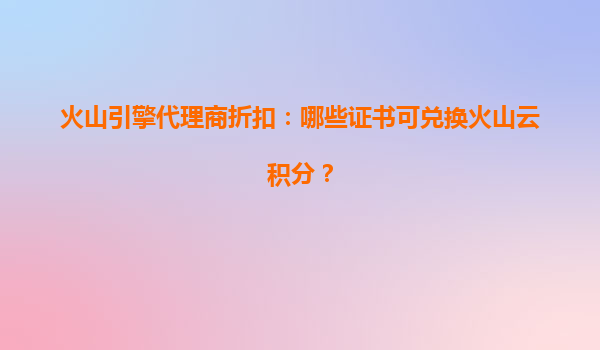 2025-07-06火山引擎代理商折扣:哪些證書可兌換火山云積分? 一、火山云與代理商的協(xié)同優(yōu)勢(shì) 火山云作為字節(jié)跳動(dòng)旗下的云計(jì)算品牌,提供穩(wěn)定高效的云服務(wù)解決方案,涵蓋計(jì)...
