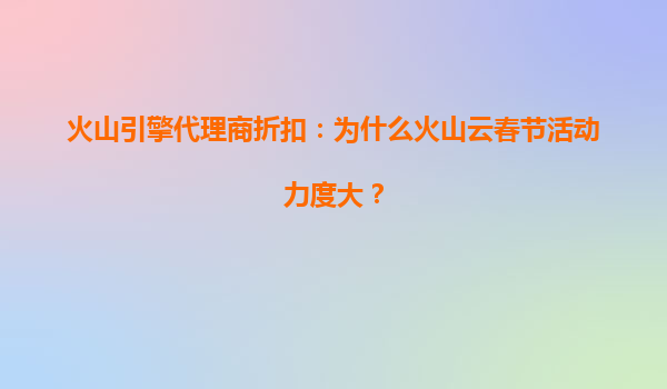 2025-07-06火山云春節(jié)活動力度大的背后原因 每逢春節(jié),各大云服務(wù)商都會推出優(yōu)惠活動吸引客戶,而火山云今年的春節(jié)活動力度尤為突出。作為火山引擎旗下的云計算品牌,火山云憑借其強大的技術(shù)實力和資源優(yōu)勢,為用戶提供了極...