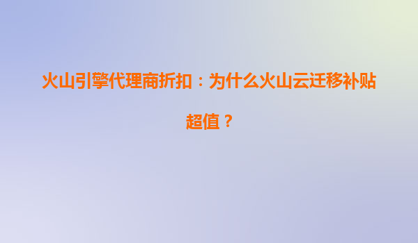 2025-07-06火山引擎代理商折扣:為什么火山云遷移補貼超值? 引言:數(shù)字化轉(zhuǎn)型的云服務(wù)選擇 在數(shù)字化轉(zhuǎn)型浪潮中,企業(yè)上云已成為降本增效的關(guān)鍵路徑?;鹕揭孀鳛樽止?jié)跳動旗下的云服務(wù)平臺,憑借...