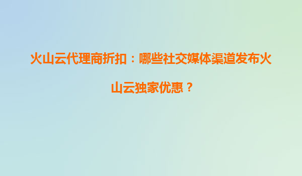 2025-07-05火山云代理商折扣:哪些社交媒體渠道發(fā)布火山云獨家優(yōu)惠? 一、火山云與代理商的協(xié)同優(yōu)勢 火山云作為領(lǐng)先的云計算服務(wù)提供商,憑借高性能服務(wù)器、彈性擴展能力和全球覆蓋的數(shù)據(jù)中心,為...