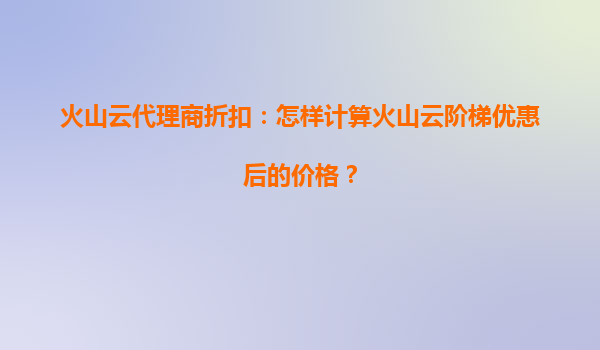 2025-07-05火山云代理商折扣:階梯優(yōu)惠價格計算與優(yōu)勢解析 一、火山云階梯優(yōu)惠規(guī)則解析 火山云的階梯優(yōu)惠是一種“用量越大,單價越低”的定價策略,通常分為以下幾個步驟: ...