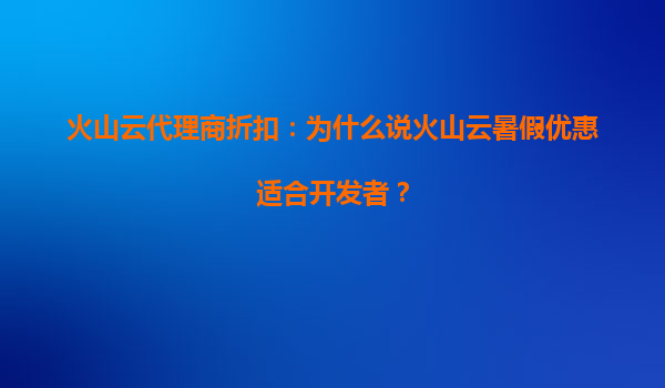 2025-07-05火山云代理商折扣:為什么說火山云暑假優(yōu)惠適合開發(fā)者? 隨著云計算技術(shù)的快速發(fā)展,越來越多的開發(fā)者開始依賴云服務(wù)來構(gòu)建、部署和管理他們的應(yīng)用程序?;鹕皆谱鳛閲鴥?nèi)領(lǐng)先的云計算服務(wù)提供商,憑借其高性能、...