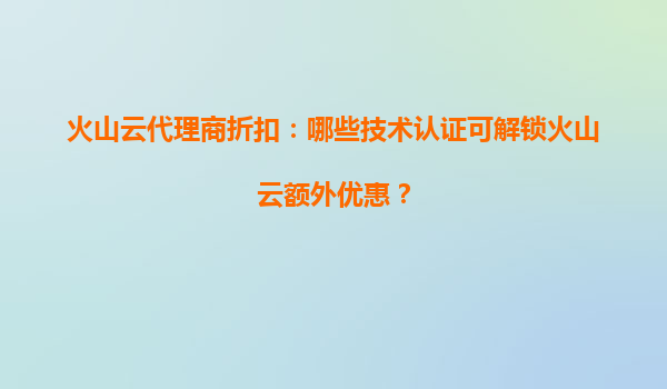 2025-07-05火山云代理商折扣:哪些技術(shù)認證可解鎖火山云額外優(yōu)惠? 一、火山云與代理商的協(xié)同優(yōu)勢 火山云作為領(lǐng)先的云計算服務(wù)提供商,憑借高性能計算資源、全球化覆蓋和...