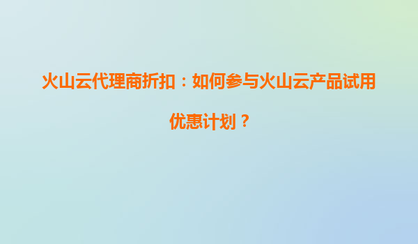 2025-07-05火山云代理商折扣:如何參與火山云產(chǎn)品試用優(yōu)惠計劃? 一、火山云的核心優(yōu)勢解析 火山云作為字節(jié)跳動旗下的云計算服務(wù)品牌,憑借以下核心優(yōu)勢成為企業(yè)數(shù)字化轉(zhuǎn)型的理想選擇: 全球基礎(chǔ)設(shè)施布局:覆蓋亞...
