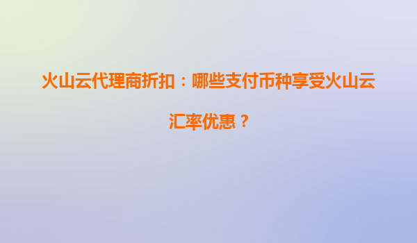 2025-07-04火山云代理商折扣:哪些支付幣種享受火山云匯率優(yōu)惠? 火山云的優(yōu)勢概述 火山云作為領(lǐng)先的云計算服務(wù)提供商,憑借其高性能、高可靠性和靈活的定價策略,吸引了...