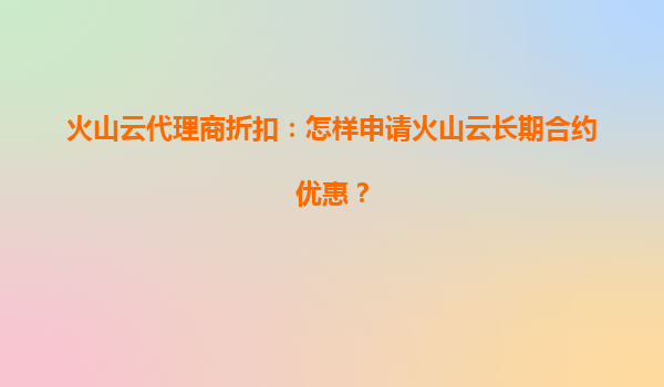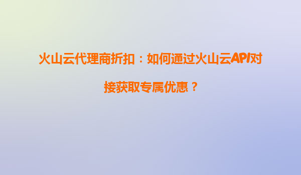 2025-07-04火山云代理商折扣:怎樣申請火山云長期合約優(yōu)惠? 一、火山云的核心優(yōu)勢 火山云作為字節(jié)跳動旗下的云計算服務(wù)品牌,憑借其強大的技術(shù)實力和資源整合能力,為企業(yè)用戶提供了高性能、高可靠的云服務(wù)解決方案...
